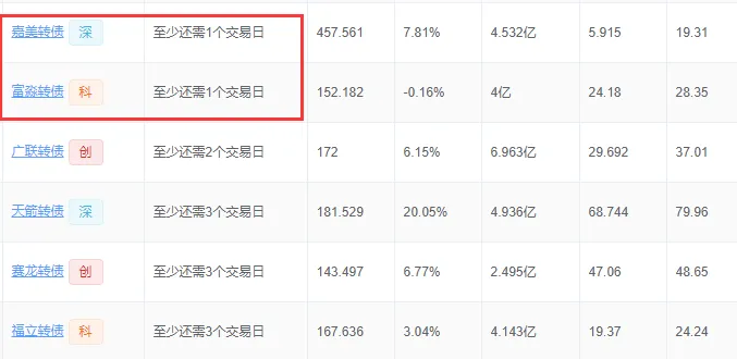 嘉美转债强赎倒计时一天,目前溢价率7.8%,风险很大。