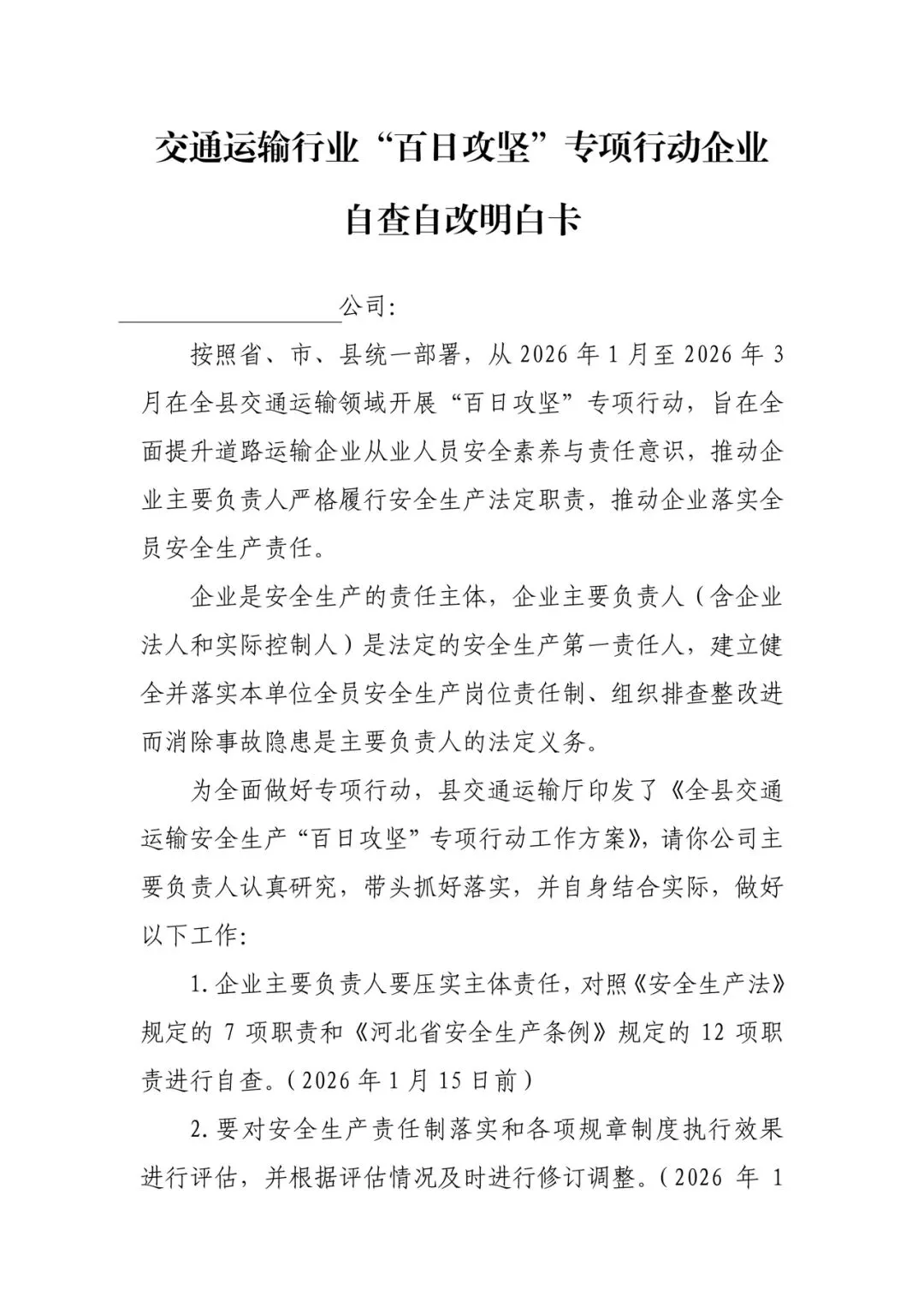 >交通运输行业“百日攻坚”专项行动企业自查自改明白卡