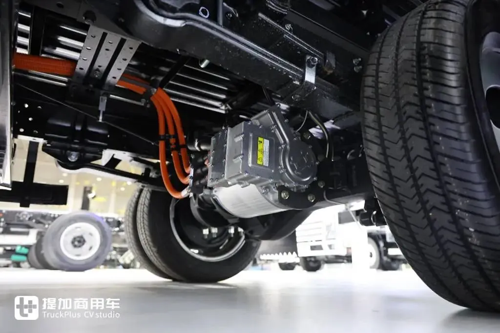 电池是宁德时代的81.12度巧克力换电磷酸铁锂电池,这个容量可以支持车辆综合续航里程285km左右,满足城市单日货运配送需求。在电池封装的外缘部分可以清晰地看到换电结构,这样的设计就让车辆达成了可充可换的特点,如果车辆运营不想被充电耽搁时间就可以选择去宁德时代巧克力换电站进行换电,尤其是冬天效率要比平常高的多。或者电池用的时间长衰减了,也可以去换电站换一块健康度高的,卖车的时候保值率还高。