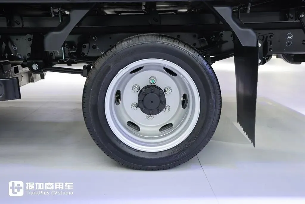 车辆采用后双胎设计,轮胎尺寸为196/65R16LT,后桥钢板弹簧片数为5+4片,车桥半轴8颗螺丝。从悬挂到车桥,不论是看数据还是真实感受,这个车在承载能力上都为用户提供了较大的冗余,在重载时车辆的安全性和可靠性也是在线的。