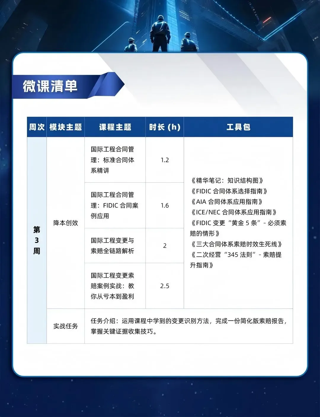 在合同管理模块,训练营深度拆解FIDIC合同条件,结合真实项目案例复盘剖析,助力学员吃透合同管理精髓。一位参与过线上FIDIC专题培训的学员在后台留言:“案例教学让抽象的理论快速落地,回到项目后,我立刻发现并规避了多个潜在合同陷阱。”