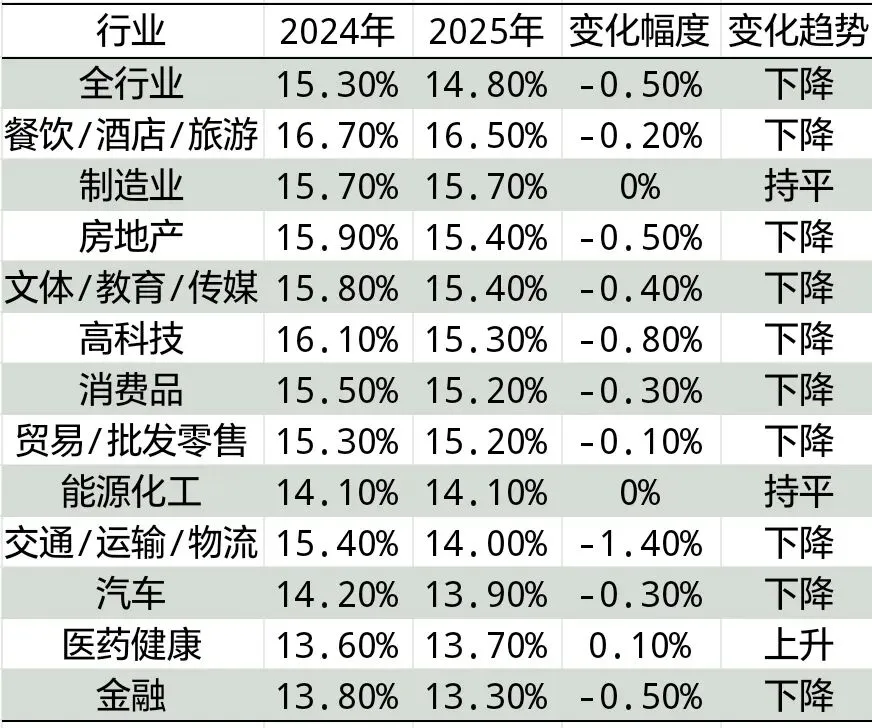>各行业离职率统计表(2024-2025)