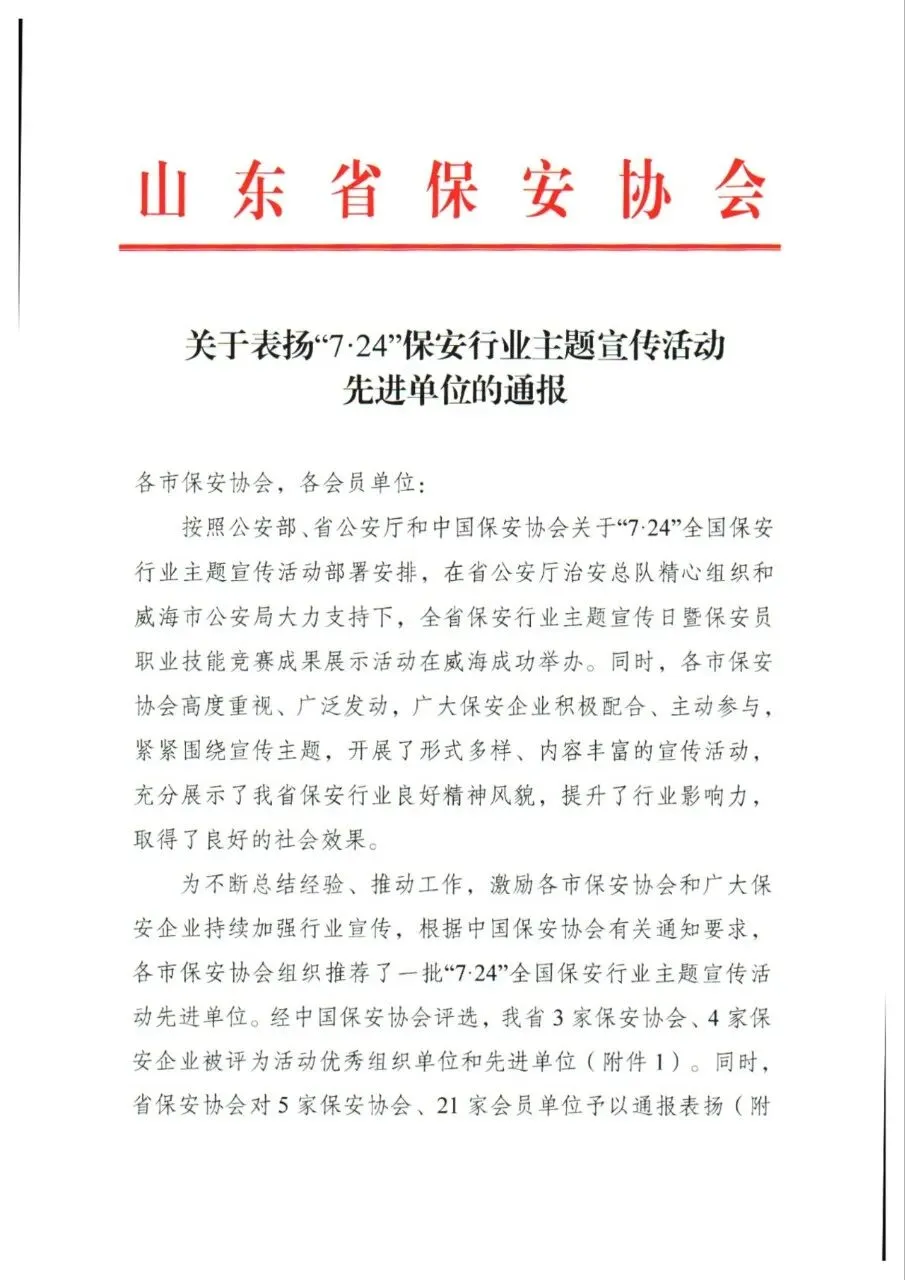 省保安协会关于表扬“7·24”保安行业主题宣传活动先进单位的通报
