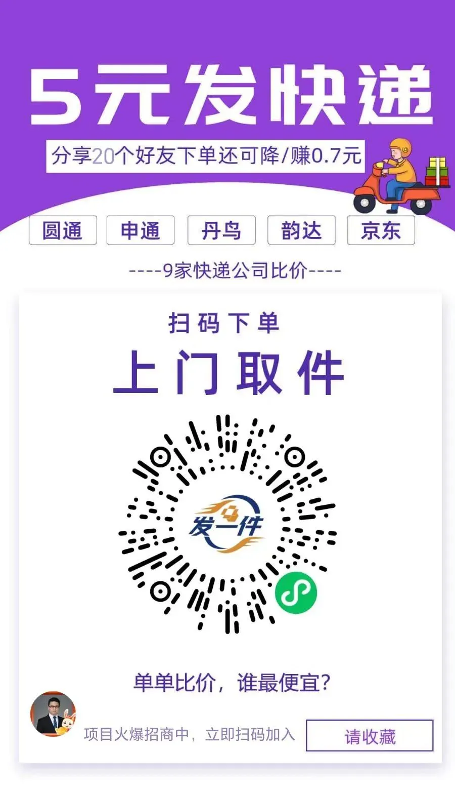 发快递,扫码下单,非常便宜。