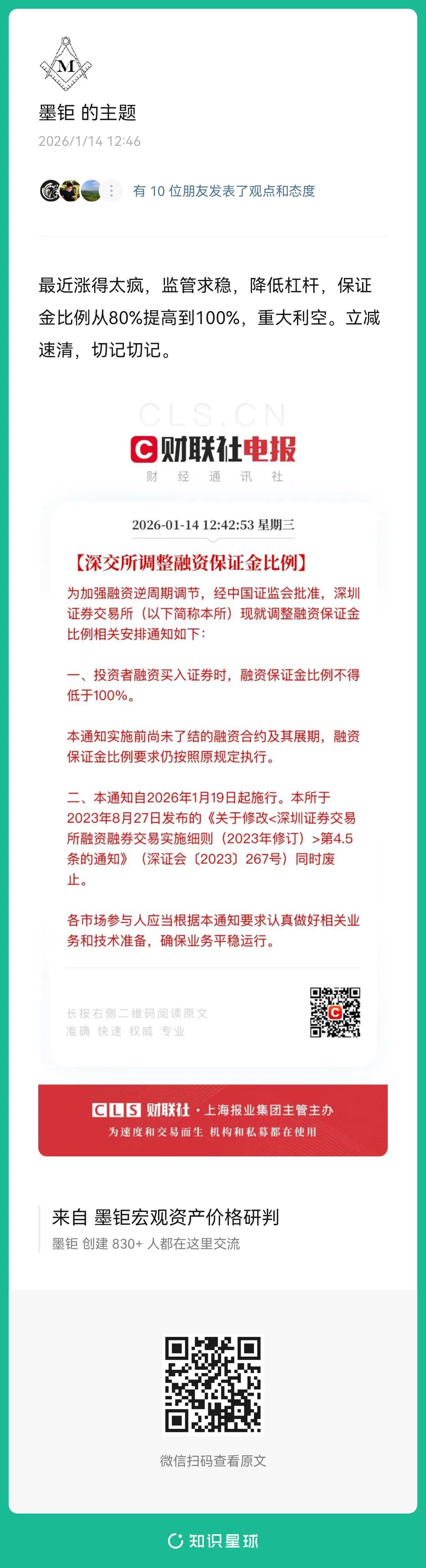 1月14日中午成功逃顶的投资者,非常从容,耐心等待抄底。参见下图:12点43分政策出来,12点46分墨钜宏观知识星球提示风险。没有逃顶的,非常纠结,建议一定要看完全文。