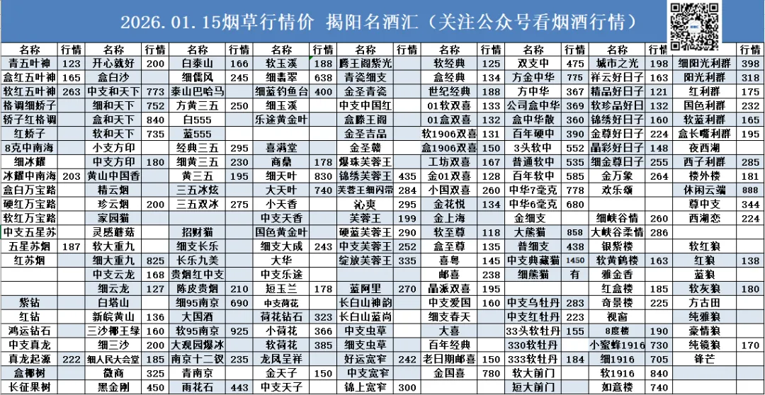 1月15日茅台名酒行情价!