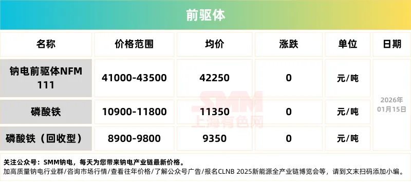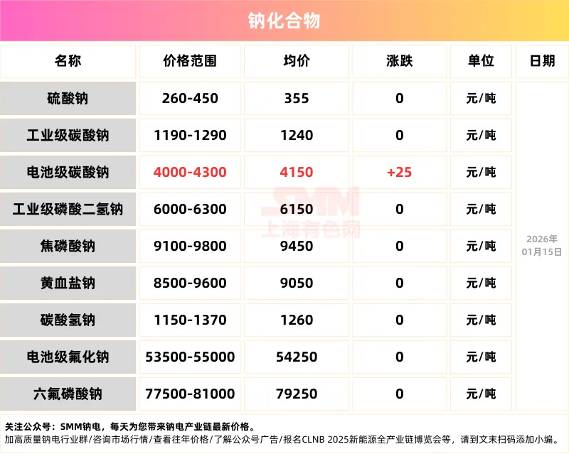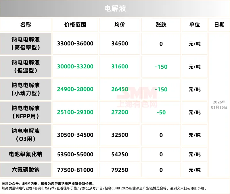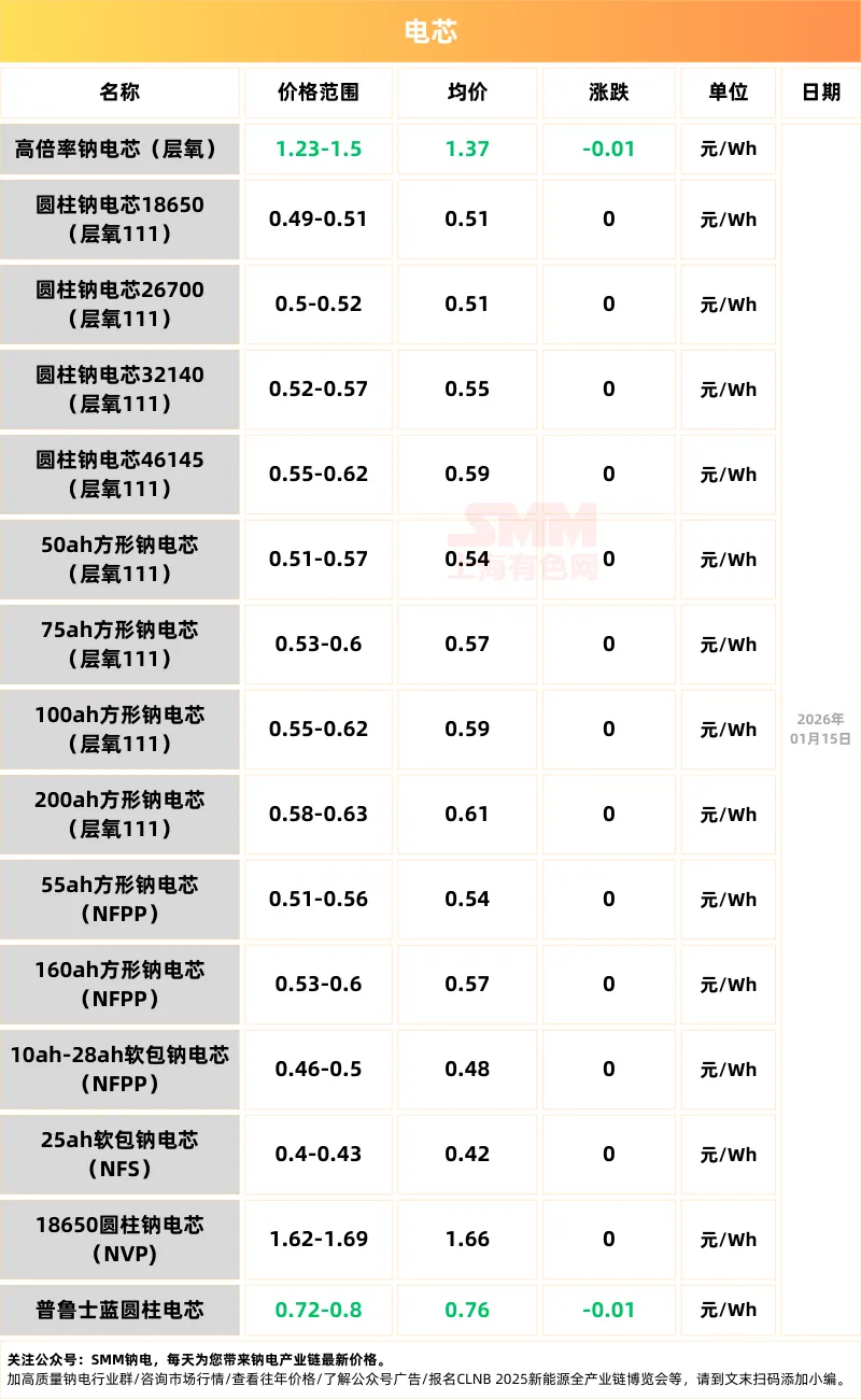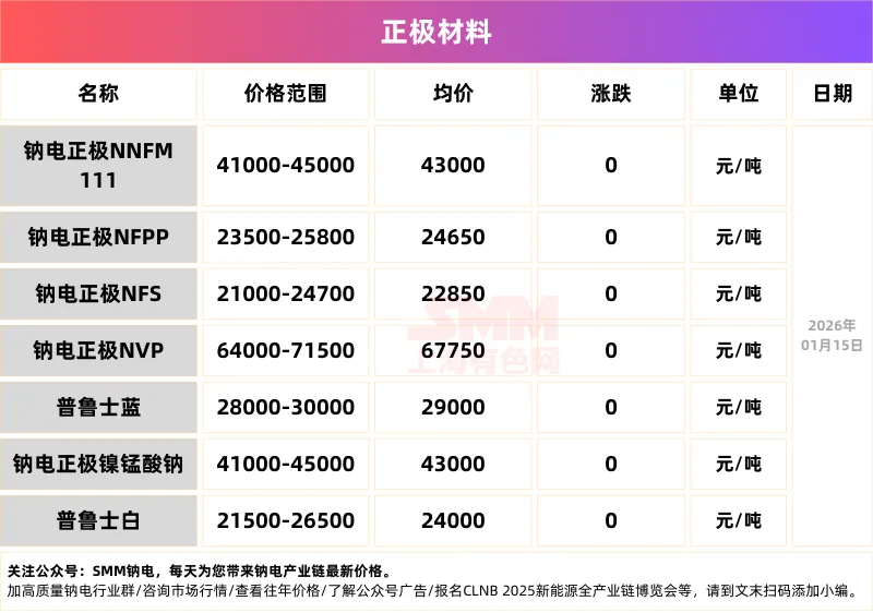 每日获取最新钠化合物、前驱体、正极材料、硬碳、电芯、电解液价格