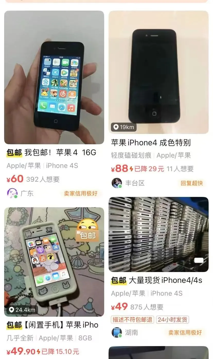 近日,iPhone4需求大增,意外爆火。部分回收商透露,其价格从废机回收的约5元/台,飙升至如今的150 - 300元/台,转手最高涨了60倍。有手机回收老板认为,这或许是果粉情怀使然。1月12日,记者在闲鱼平台看到,不少卖家出售iPhone4,多数价格在100元以内,也有200 - 300元的,未拆封版本甚至被炒到近千元。平台行情显示,近7日交易价约45元。在海外,TikTok上与“digicam”标签相关的发文超34.7万条。不过,国内主流二手平台价格与海外不同,且“近1000%增长”或因此前成交基数低。iPhone4于2010年6月发布,如今15年后爆红,背后既有年轻人对复古潮流的喜爱,也不排除商家借机炒作清库存的可能。