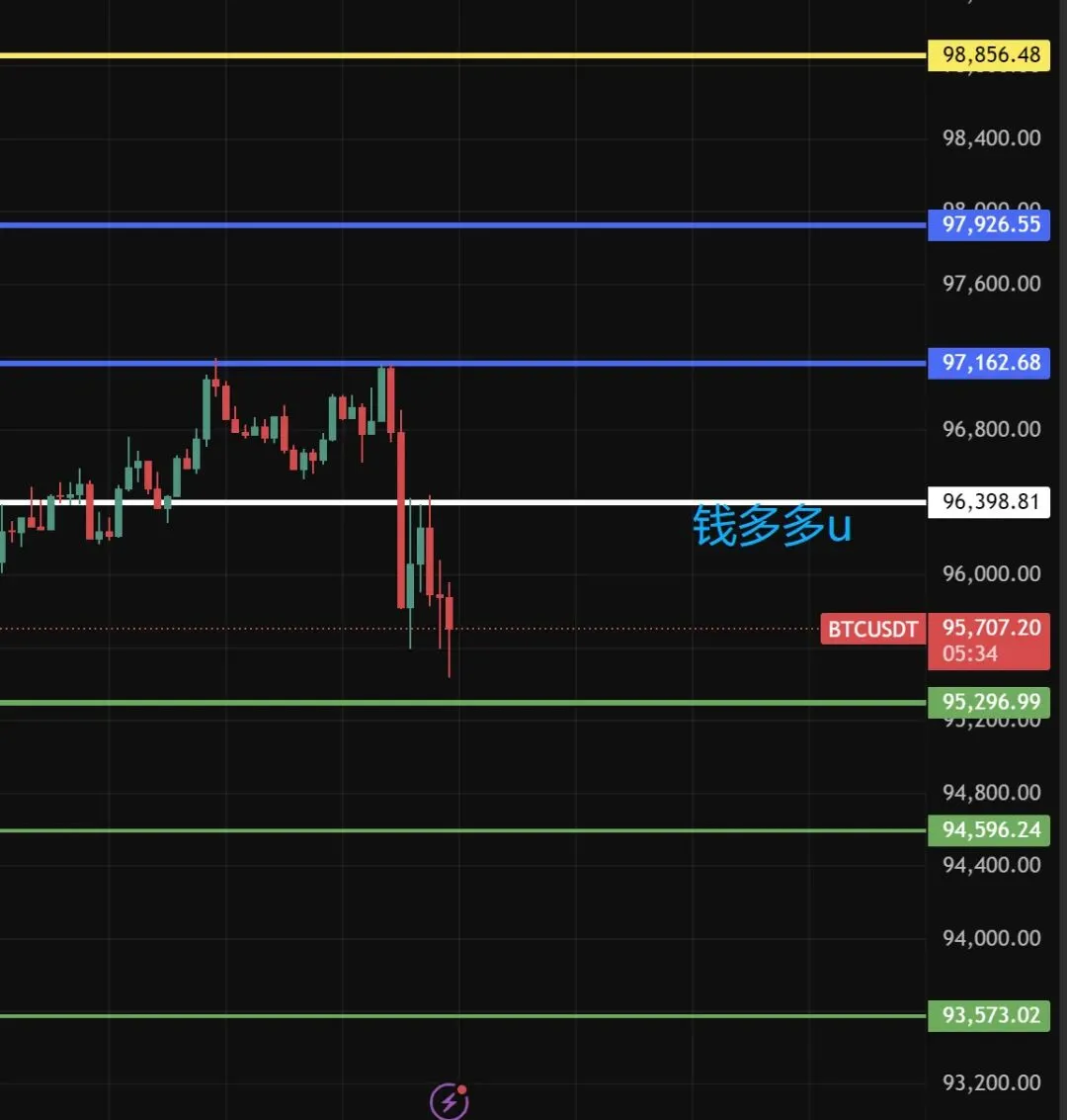 中午更新的点位~大家可以复盘一下!跟点位走是不是捡钱!点位精准到什么程度!打损会很少~打损了同样会疼~建议你每天跟~做一个月看看月化呢?进专属小圈子滴滴多多~夜间点位来咯~大饼反弹站稳96400看压力97166/97918/98858.回踩支撑接多95300/94588/93566防守92800.