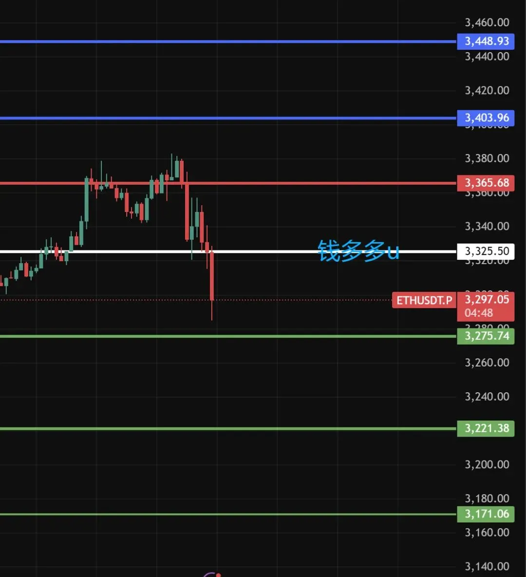 以太夜间站稳3325看压力3366/3403/3446防守3470.回踩支撑接多3276/3222/3171防守3150.