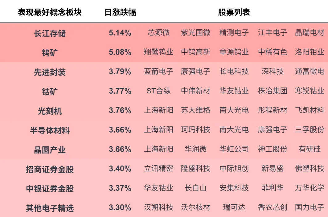 概念板块表现情况