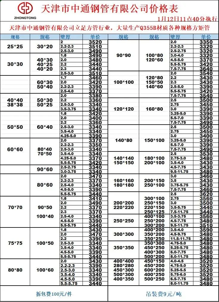 中通价格(点击可放大)