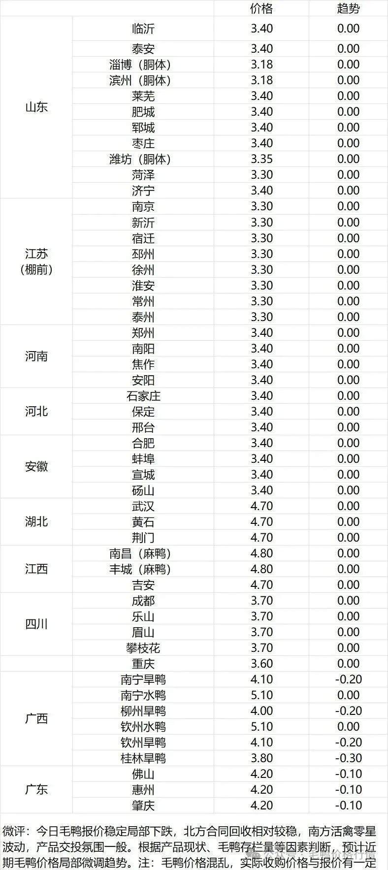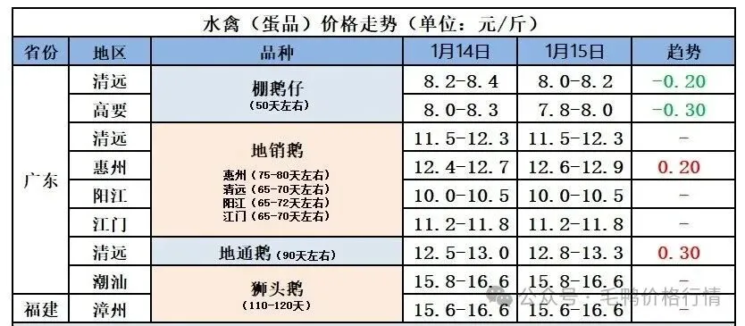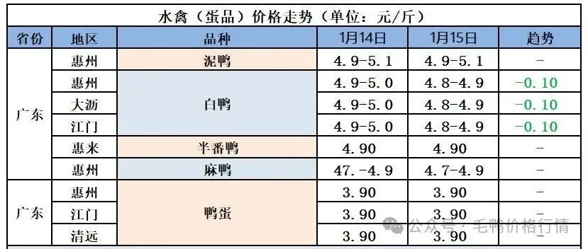 【广东白鸭价格走势】