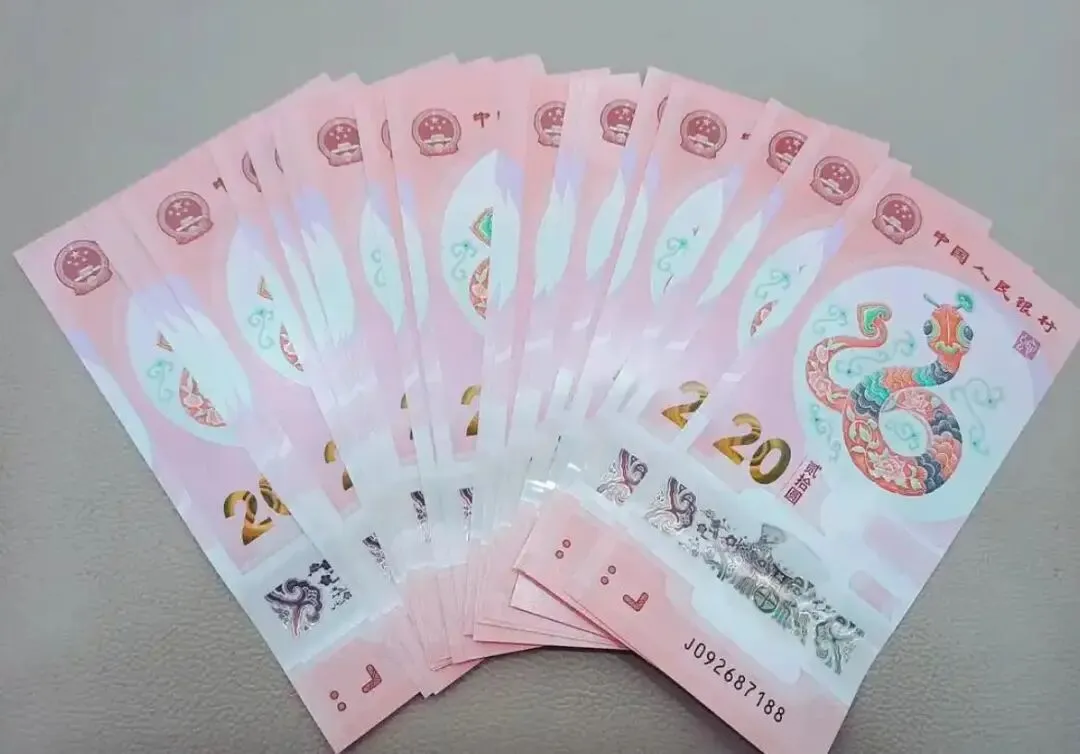 蛇年生肖纪念钞发行量还是1亿张,面值20元,材质是塑料钞的,这些都是和龙钞一样,没有什么变化。这个发行量不算多,毕竟生肖纪念钞是个热门纪念钞,1亿张的发行量也能够让很多普通人、爱好者预约到。