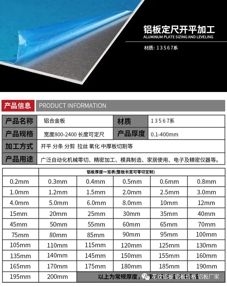 | 6061/6063/6082/6A02合金铝板 | O,H14,H24,H22,H112,T4,T6 | 0.8mm~150mm | 2200mm以下 | 11000mm以下 |