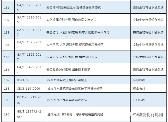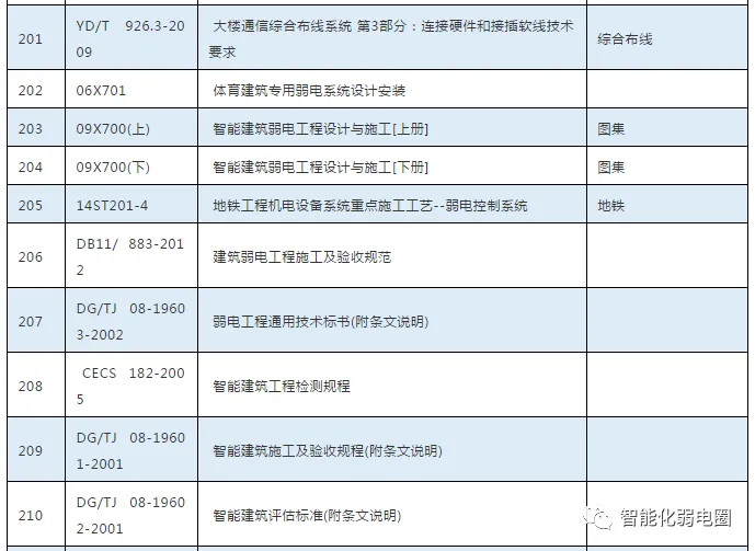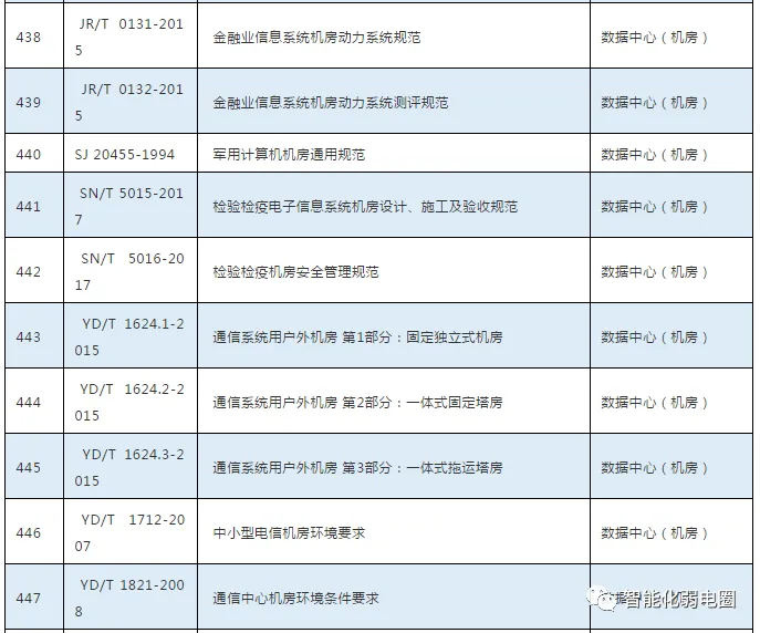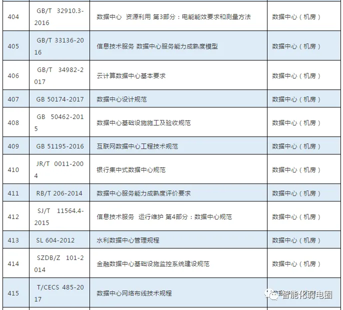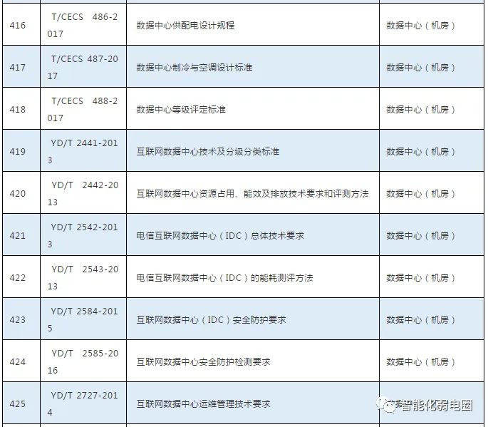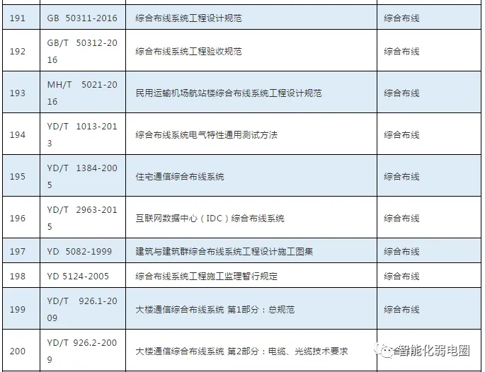 这些弱电子系统都需要遵循相关的规范,比如弱电行业中常用的规范有GB50311-2016综合布线系统工程设计规范,GB50174-2017数据中心设计规范,GB50314-2015智能建筑设计标准等等。下面把弱电行业常用的规范做一个简单的整理: