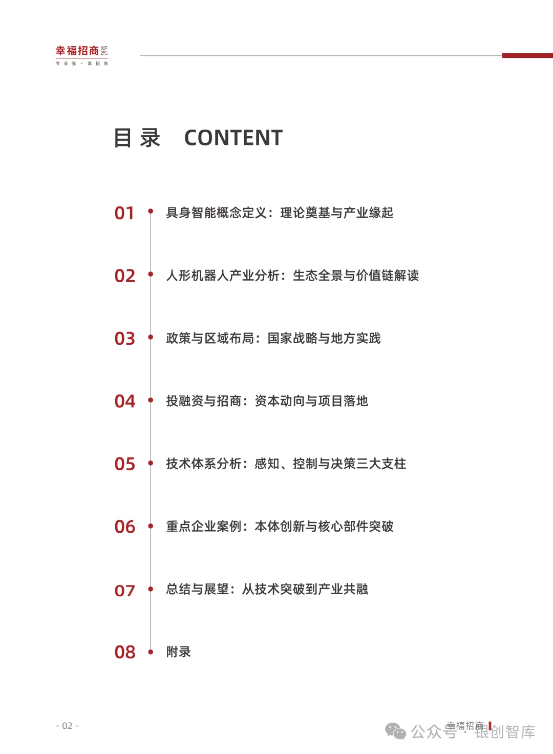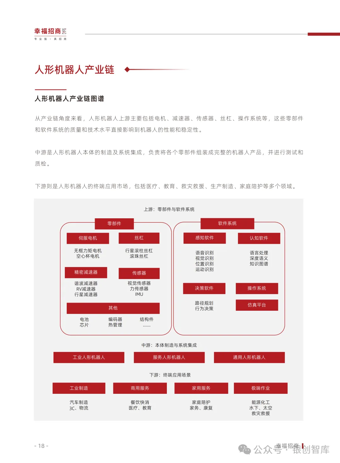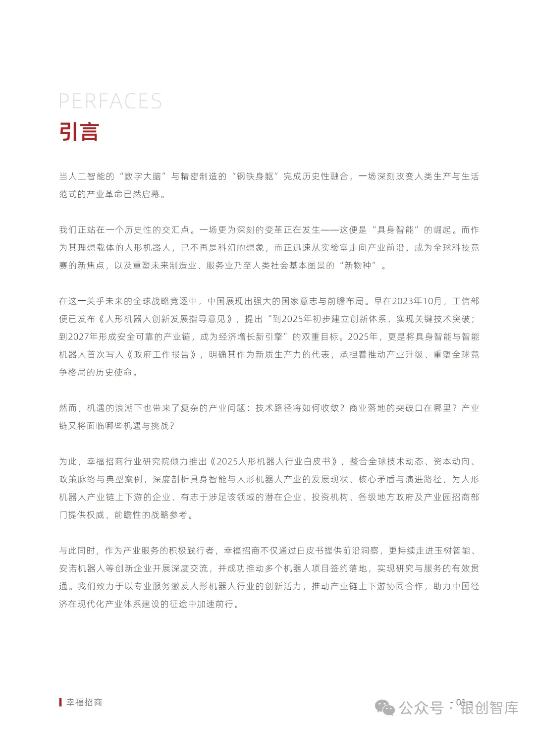 为此,幸福招商行业研究院整合全球技术动态、资本动向、政策脉络与典型案例,推出《2025人形机器人行业白皮书》,深度剖析具身智能与人形机器人产业的发展现状、核心矛盾与演进路径。同时,我们以产业服务践行者之姿,联动产业链创新企业推动项目落地,助力上下游协同合作。本白皮书旨在为行业企业、投资机构、地方政府及招商部门提供权威前瞻的战略参考,共同激发产业创新活力,推动中国在全球人形机器人赛道上抢占先机,加速现代化产业体系建设的征程。