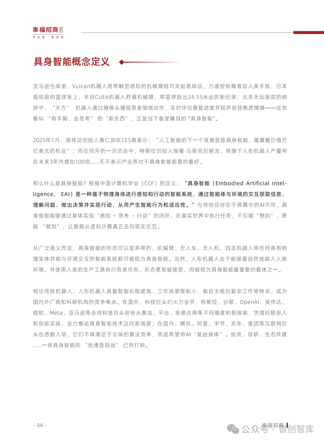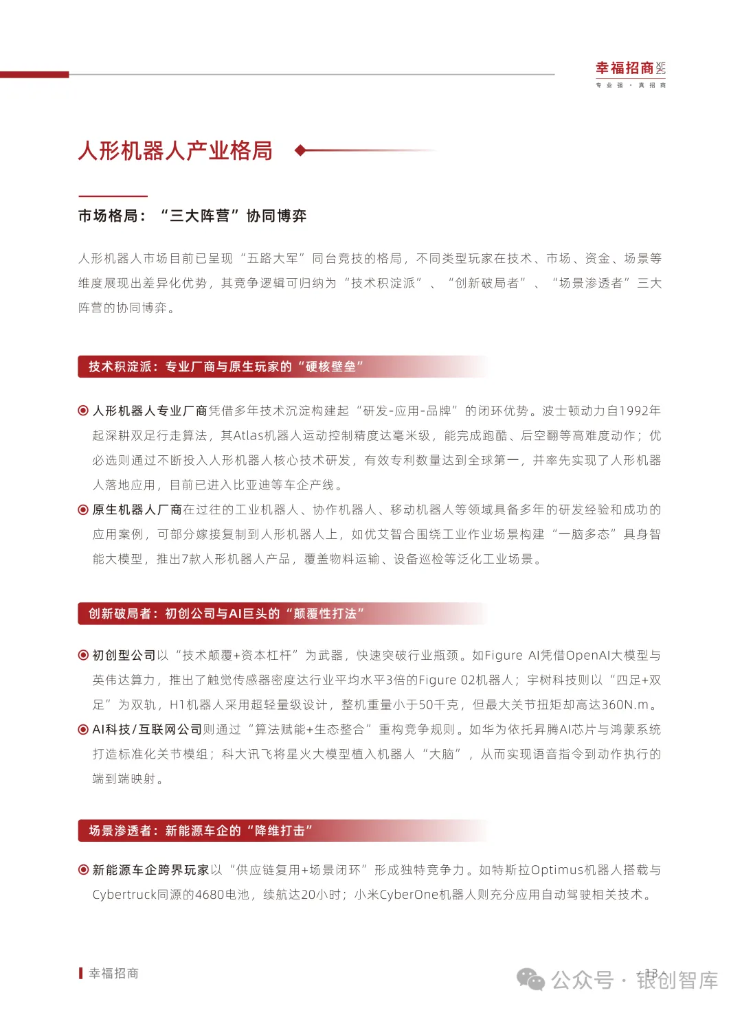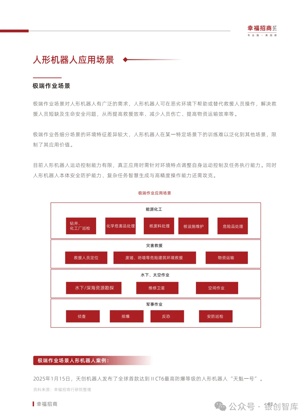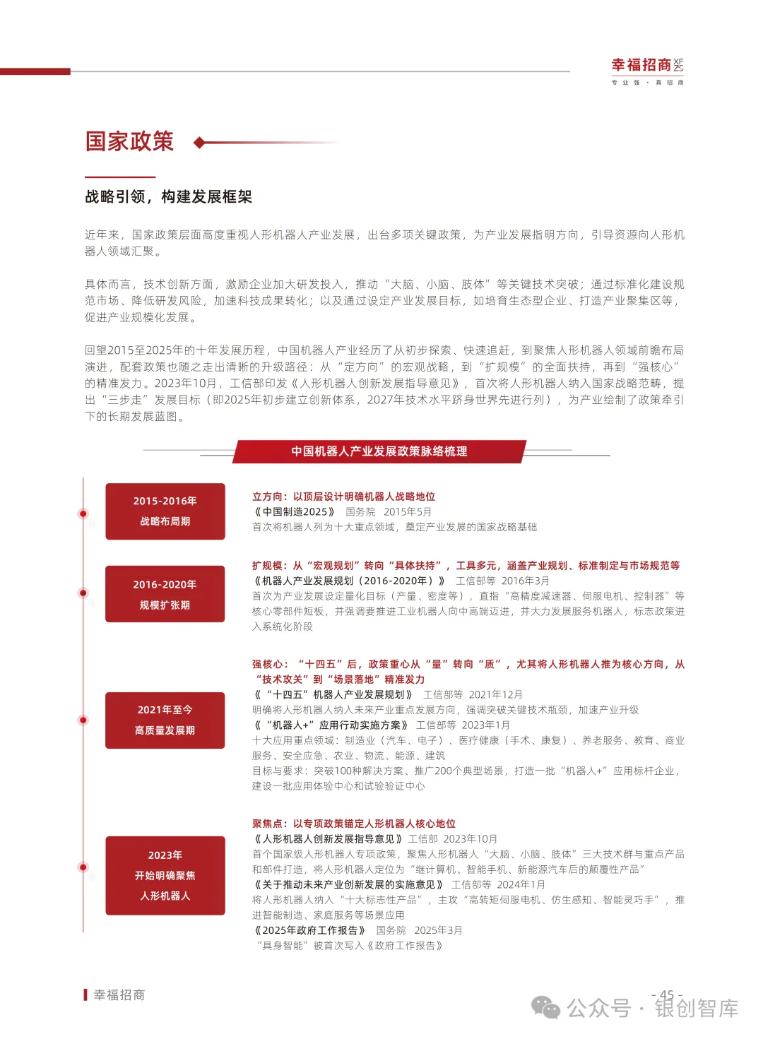 为此,幸福招商行业研究院整合全球技术动态、资本动向、政策脉络与典型案例,推出《2025人形机器人行业白皮书》,深度剖析具身智能与人形机器人产业的发展现状、核心矛盾与演进路径。同时,我们以产业服务践行者之姿,联动产业链创新企业推动项目落地,助力上下游协同合作。本白皮书旨在为行业企业、投资机构、地方政府及招商部门提供权威前瞻的战略参考,共同激发产业创新活力,推动中国在全球人形机器人赛道上抢占先机,加速现代化产业体系建设的征程。
