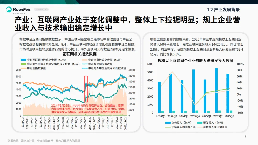 2025年,移动互联网行业在经济稳进、科技革新与消费升级的多重背景下,呈现出变革与机遇并存的发展态势。宏观层面,中国经济增速稳定,第三产业占比保持在57%-61%,消费结构向发展型、享受型跨越,教育文化娱乐等支出增速显著。产业端,互联网行业虽有波动,但规上企业业务收入与研发投入稳步增长,短视频、手机游戏等领域成为用户时长增长核心。完整版报告已上传至星球,扫下方优惠券加入即可下载所有报告
