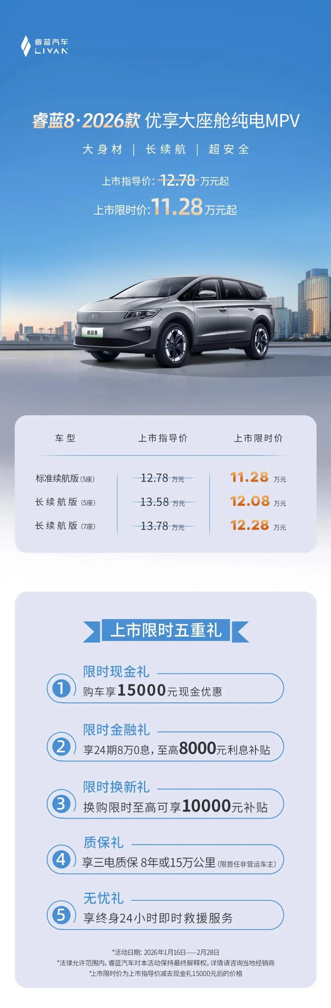>上市限时价11.28万元起!睿蓝8 2026款加量不加价焕新而来