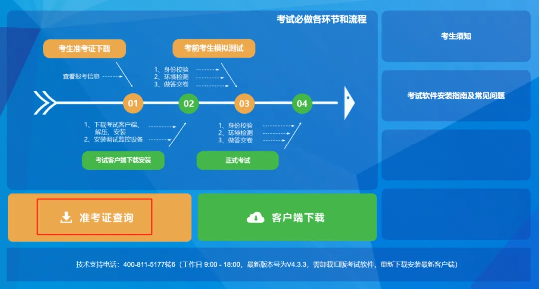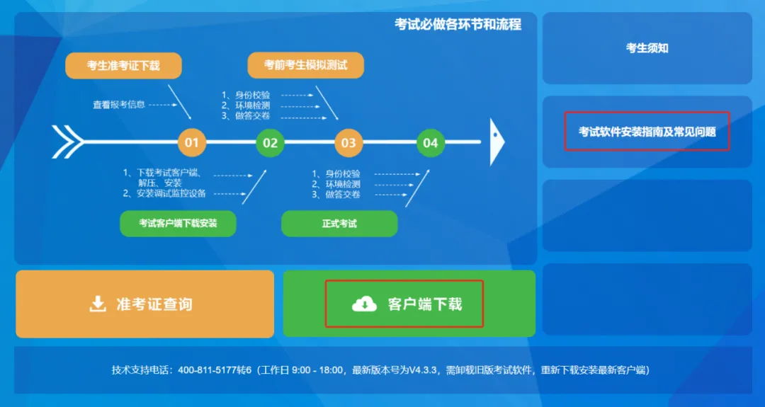 点击“客户端下载”安装最新版考试软件,安装过程中如遇到问题,请查看《考试软件安装指南及常见问题》。
