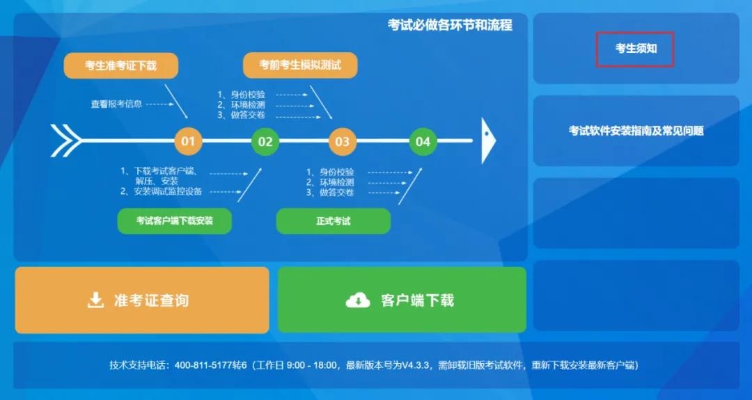 请认真阅读考生须知,了解考试时间及考试环境、设备、网络环境要求等相关信息。