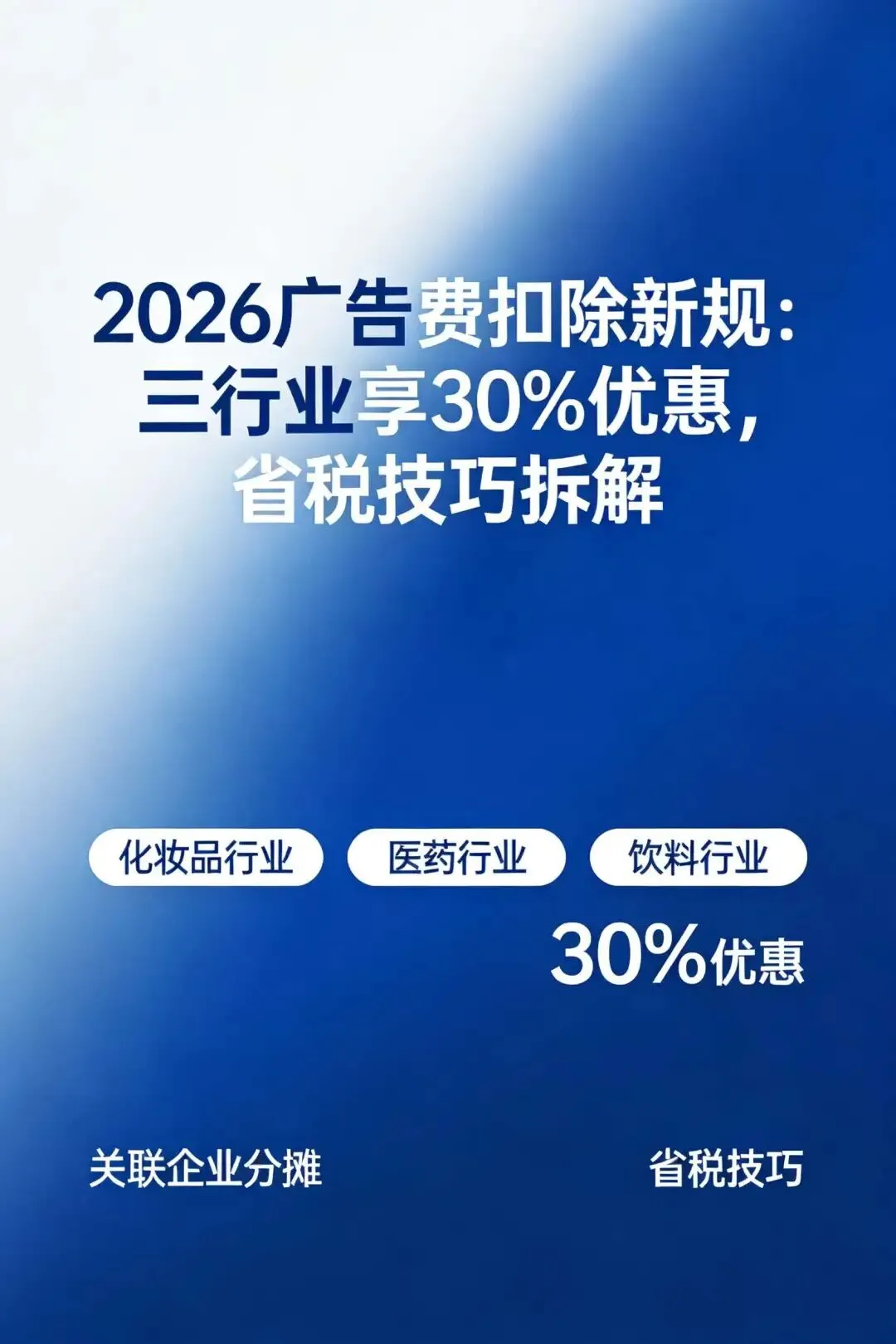 2026广告费扣除新规出台,化妆品、医药、饮料行业广告费扣除比例提至30%!本文详解政策要点、关联企业分摊技巧及真实节税案例,助企业合规省税。