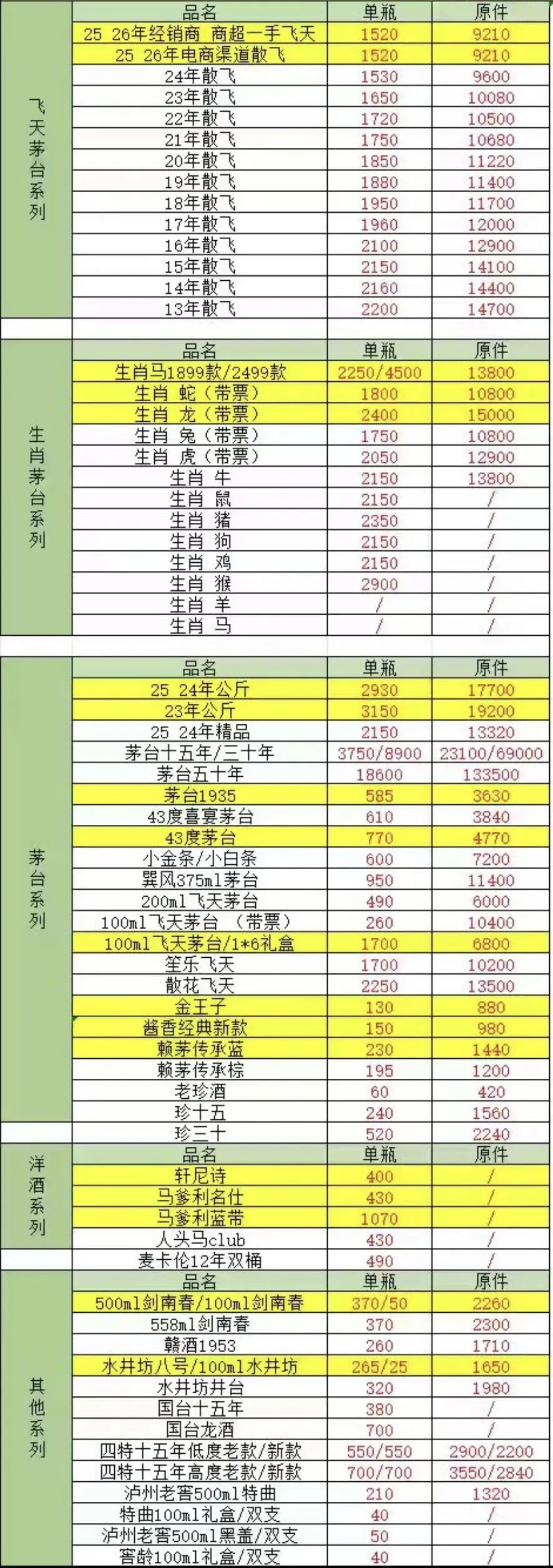 由于白酒飞天茅台价格存在实时变化、地区差异等原因,报价仅供参考。