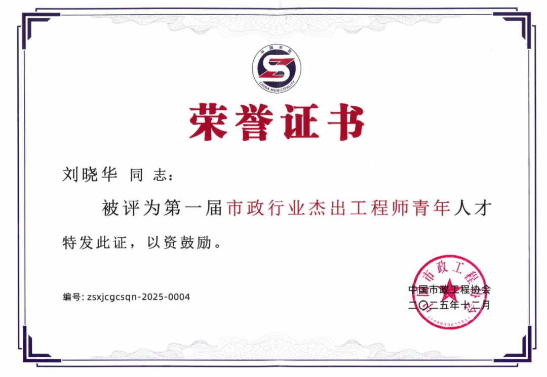 此项荣誉不仅是刘晓华个人专业实力见证,更彰显了综交市政院长期坚守高质量发展理念、深耕人才梯队建设的显著成效。