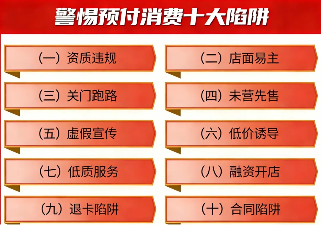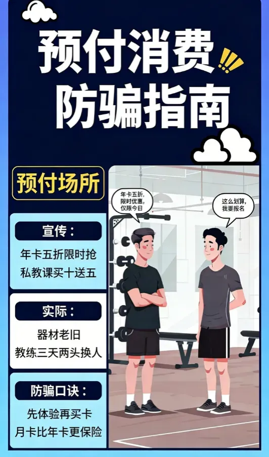 由于体育健身及校外培训等相关机构经营模式的更新以及市民消费方式的转变,预付式消费模式不断扩大,合同纠纷、消费欺诈、安全监管等问题频发,培训机构闭店或变更经营地址引发退费纠纷、考试考级未通过机构未按承诺退费、退费手续费过高,机构宣传授课方式或课程内容与实际不符、夸大或隐瞒所提供商品及服务数量,培训机构无办学资质、违规开展培训等,一定程度上损害了市民的消费权益,影响了体育健身和涉体育类校外培训等相关行业的可持续健康发展。为进一步营造良好的预付式消费环境,切实维护广大市民消费者合法权益,现做预付式消费陷阱提示和预防措施如下: