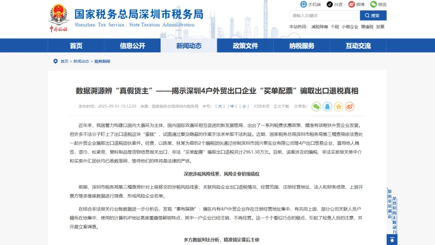 还在把“买单出口”当捷径?国税局近期破获一起重大出口骗税案:4家企业通过“买单配票”骗取退税2961.38万元,最终被追罚超9000万元,7人落网。