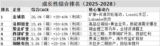 金诚信(26.0%):双轮驱动,最高成长性,估值优势中等成长性标的(CAGR 8-15%)