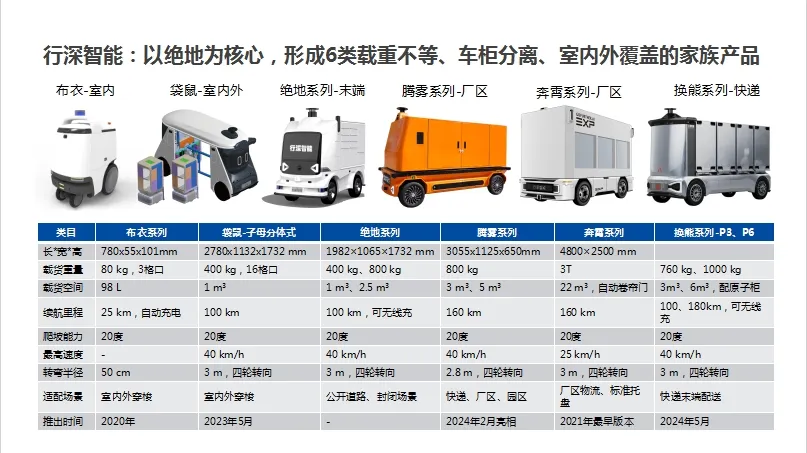 行深智能:产品专家、自建运力,部署超1000余辆。