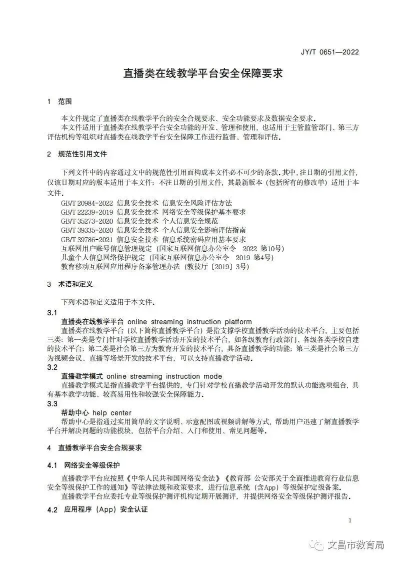 日前,教育部研究制定《直播类在线教学平台安全保障要求》,规定了直播类在线教学平台的安全合规要求、安全功能要求及数据安全要求,并作为教育行业标准予以发布。具体内容跟小编一起来看——
