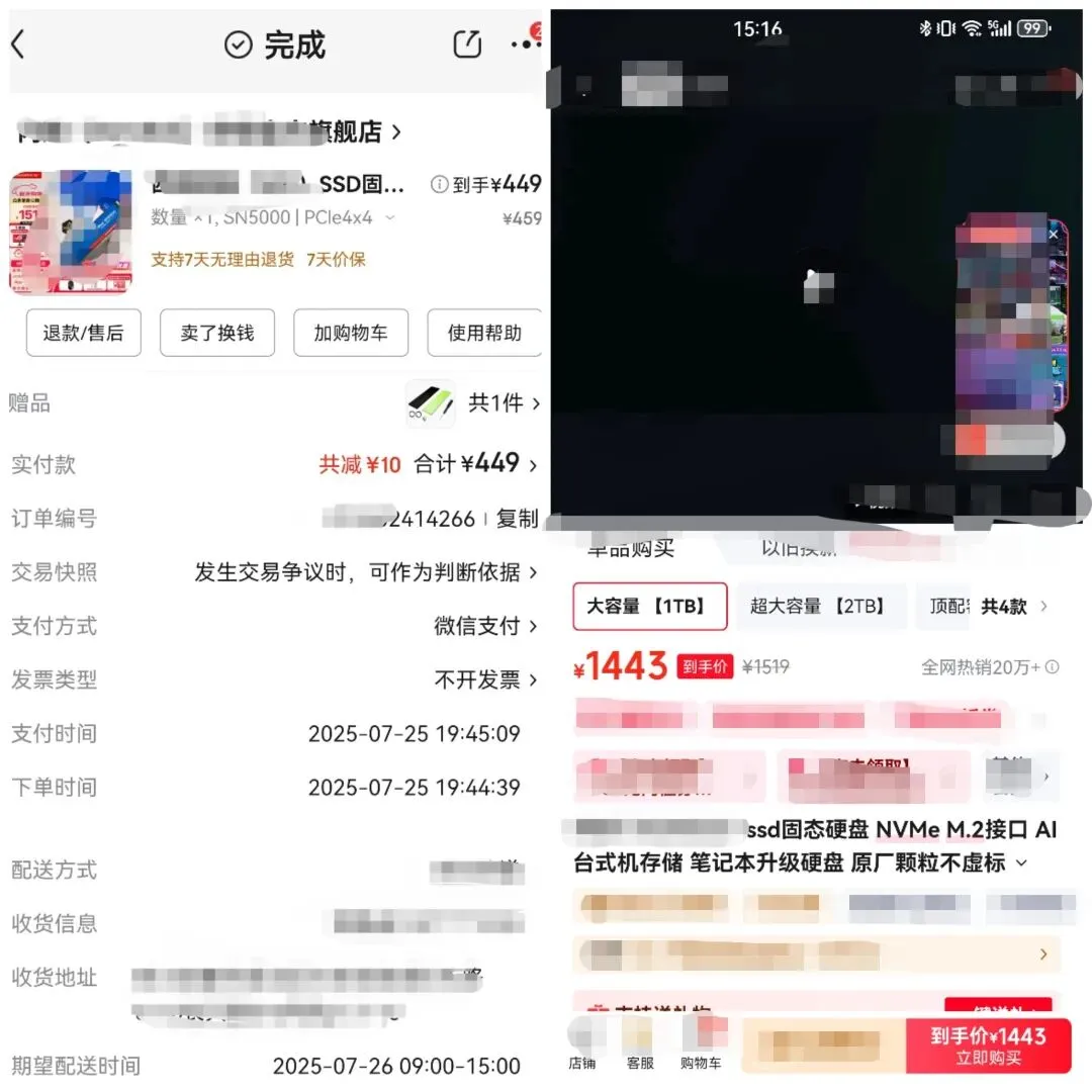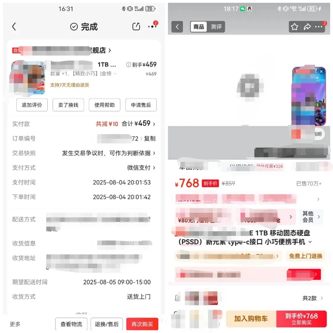 很多东西买完就贬值,比如汽车、电脑、手机等等,而且一般是买的时间越久贬值越厉害;但是我没想到,我在2025年买的这个商品,仅仅过去了不到1年,有的已经翻倍,有的甚至翻了2倍,你们想到是什么了吗?存储卡!没错,就是我们日常用的那个移动硬盘以及电脑的内存条。一起来看看我去年在电商平台买过的3个不同品牌的内存条如今都是什么价格。 这个是我2025年2月买的第一个1TB存储硬盘,我买的时候是359现在同样的东西是750,不到1年时间价格翻了1倍多;