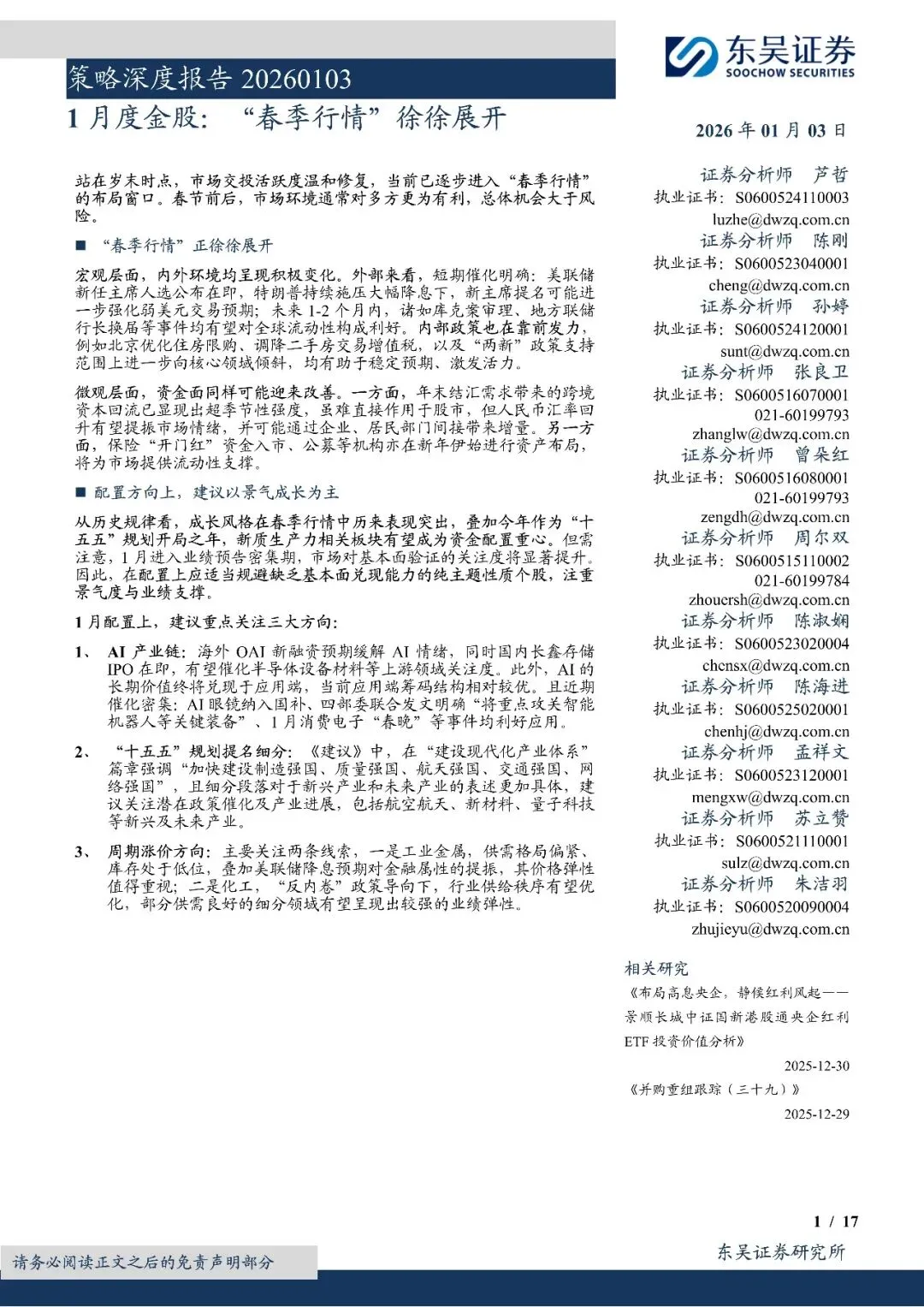 暗号:策略深度报告:1月度金股,“春季行情”徐徐展开-260103-东吴证券-17页