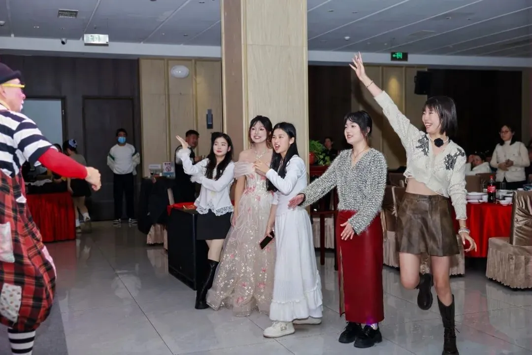 晚宴现场也是好戏连台、精彩不断。外邀团队带来的开场舞《舞动青春》活力四射,瞬间点燃现场气氛;会员们自编自演的娱乐节目展现了宠业伙伴们的多才多艺,外邀演员的精彩表演更是赢得阵阵掌声。中国现代舞《凤鸣朝阳》舞姿优美、意蕴悠长,爵士舞《Boom boom》动感十足、魅力四射,歌手演唱的《光年之外》《破茧》《红日》等经典歌曲引发全场大合唱,孙老师和刘老师的《贤良》更是将气氛推向高潮,杂耍《滑稽小丑》则让现场欢声笑语不断。在欢声笑语中,晚宴圆满落幕。