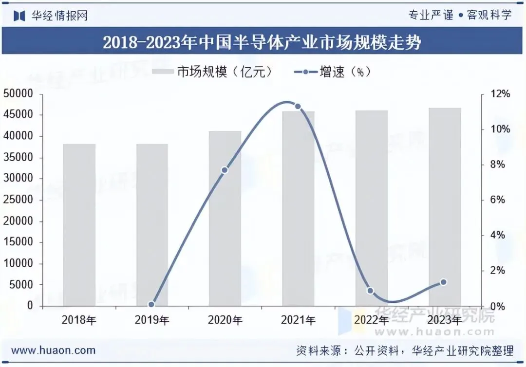 半导体产业作为关系国计民生和国防安全的支柱产业,对于经济发展和国家安全具有重要影响,在半导体领域,高纯石英砂是制造大规模集成电路硅片的关键原料,其中的杂质含量直接影响着芯片的性能和良品率。以14纳米制程工艺为例,对硅片原料的金属杂质含量要求低于10ppb,这对原料纯度提出了极高要求。据统计,2023年我国半导体产业市场规模位46876亿元,同比增长1.3%。