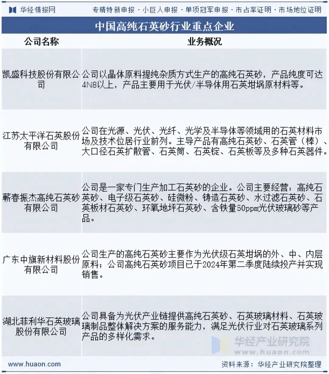 近期,我国发现多个4N8等级的高纯石英矿脉,石英企业矿源制约或将缓解,半导体及光伏行业的供应链安全风险有望解决。头部企业具备制备经验及客户资源的先发优势,目前我国高纯石英砂行业主要企业有凯盛科技股份有限公司、江苏太平洋石英股份有限公司、蕲春振杰高纯石英砂有限公司、广东中旗新材料股份有限公司、湖北菲利华石英玻璃股份有限公司等。其中石英股份作为国内目前唯一一家掌握高纯石英砂量产技术的企业,其石英石采购情况及高纯石英砂的生产情况一定程度上可间接反映我国高纯石英砂行业整体供给情况。