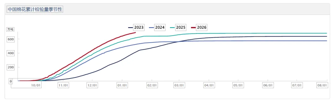 美国农业部发布全球棉花供需1月报告,该报告显示,2025/26年度全球棉花产量预测值为2600.3万吨,较前期调减7.8万吨。全球消费调增6.8万吨至2589.2万吨,全球期末库存调减32.5万吨至1621.6万吨。美国农业部发布公布1月美国棉花供需报告,报告显示,2025/26年度美国棉花产量预测值为303.07万吨,较上个月同期减少7.62万吨。美国消费预估保持34.84万吨,期末库存环比调减6.53万吨至91.44万吨。印度棉花协会(CAI)最新报告显示,截至2025年12月31日,CAI评估印度棉花2025/26年度棉花平衡表,与上月评估相比产量调增13万吨,国内需求调增17万吨,出口下调5万吨,导致期末库存继续增加1万吨。与上一年度比较,期初库存增加36万吨,产量增加8万吨,进口增加15万吨,国内需求减少15万吨,出口减少5万吨,期末库存增加80万吨。2025/26年度平衡表调整中性,12月上市明显提速,产量进一步上调,不过国内消费上调基本抵消了产量增量。CFTC数据显示,截至2026年1月6日,ICE期棉基金净多头率为-15.14%(周环比增0.99个百分点,上周增0.41个百分点)【基金多头持仓-基金空头持仓)/总持仓】。12月,纺织品服装出口金额259.92亿美元,同比下降7.4%,其中,纺织品出口125.8亿美元,下降4.23%;服装出口134.12亿美元,下降10.19%。2025年1-12月,纺织品服装累计出口金额2937.67亿美元,下降2.44%,其中,纺织品出口1425.85亿美元,增长0.44%;服装出口1511.82亿美元,下降5%。据国家棉花市场监测系统,截至1月8日,全国新棉采摘进度99.9%,同比持平,较过去四年均值持平;全国交售率为99.5%,同比提高0.1个百分点,较过去四年均值提高0.6个百分点 ;全国加工率为94.5%,同比下降0.5个百分点,较过去四年均值提高3.5个百分点;全国销售率为55.6%,同比提高24.1个百分点,较过去四年均值提高27.6个百分点。据国家统计局数据,11月份,中国服装、鞋帽、针纺织品类商品零售额为1542亿元,环比增长4.84%,同比增长4.19%。据海关统计数据,2025年11月棉制品(包括含棉混纺制品,不仅指纯棉制品,下同)出口量64.64万吨,环比增加6.32%,同比增加9.84%;出口金额52.74亿美元,环比增加12.74%,同比减少10.67%;出口单价为8.16美元/千克,环比上涨6.11%,同比下跌18.64%。据中国棉花信息网调查数据显示,截止12月底,全国棉花工商业库存共676.85万吨,较11月底增加114.53万吨,同比增加11.39万吨,其中商业库存为578.47万吨,较11月底增加110.11万吨,同比增加9.96万吨,工业库存为98.38万吨,较11月底增加4.42万吨,同比增加1.43万吨。海关总署最新数据显示,2025年12月,我国出口纺织品服装259.92亿美元,同比下降7.35%,环比增加8.89%; 其中纺织品出口125.8亿美元,同比减少4.16%,环比增加2.48%;服装出口134.12亿美元,同比下降10.15%,环比增加15.69%。据美国农业部,截至2026年1月8日,美国累计净签约出口25/26年度棉花162.3万吨,同比减少13.99%,达到年度预期出口量的61.11%,累计装运棉花74.8万吨,装运率46.08%。2026年1月USDA棉花供需报告的核心要点高度一致,具体可从以下几个方面进行印证和补充: