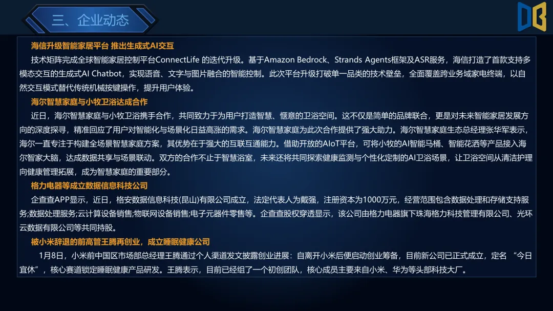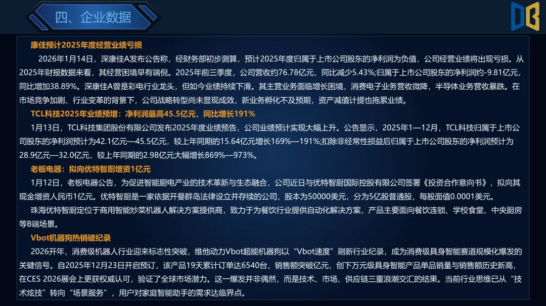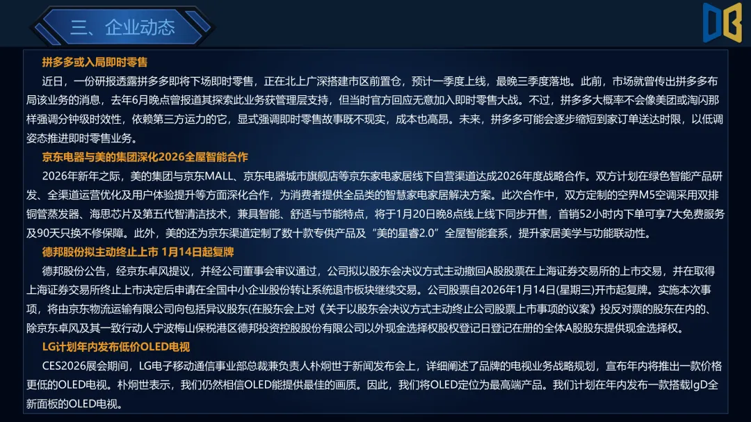 >家电行业2026年第3周周报