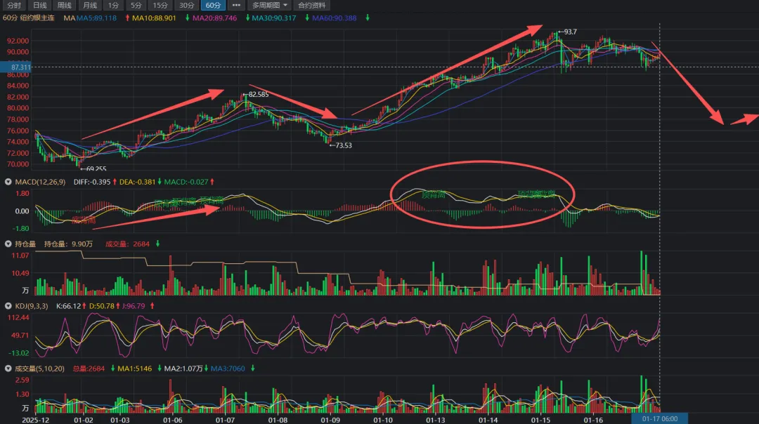 外盘从技术面看,60分钟级别MACD 出现顶背离,短期上涨动能已明显减弱。