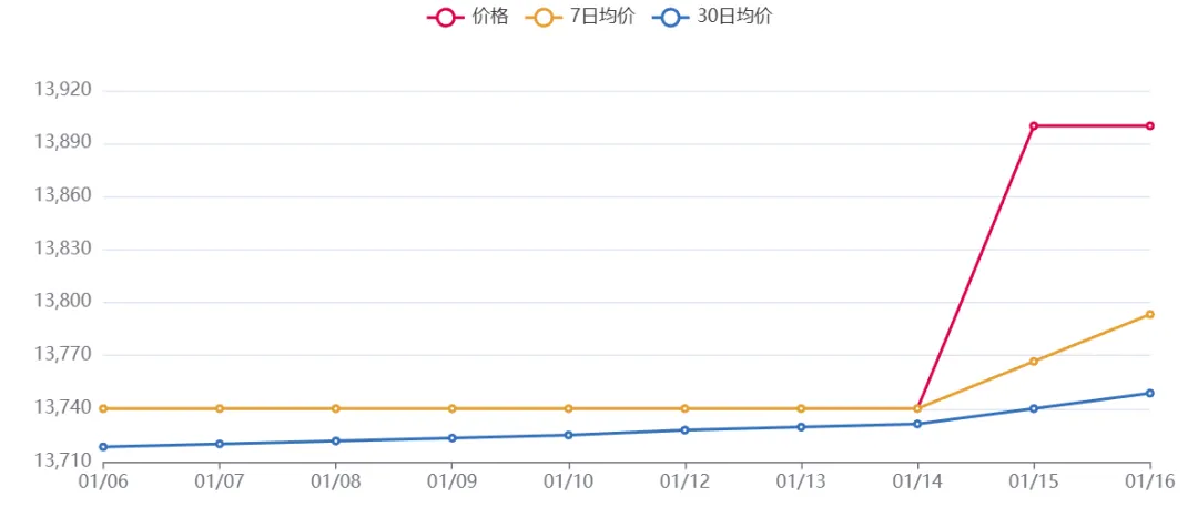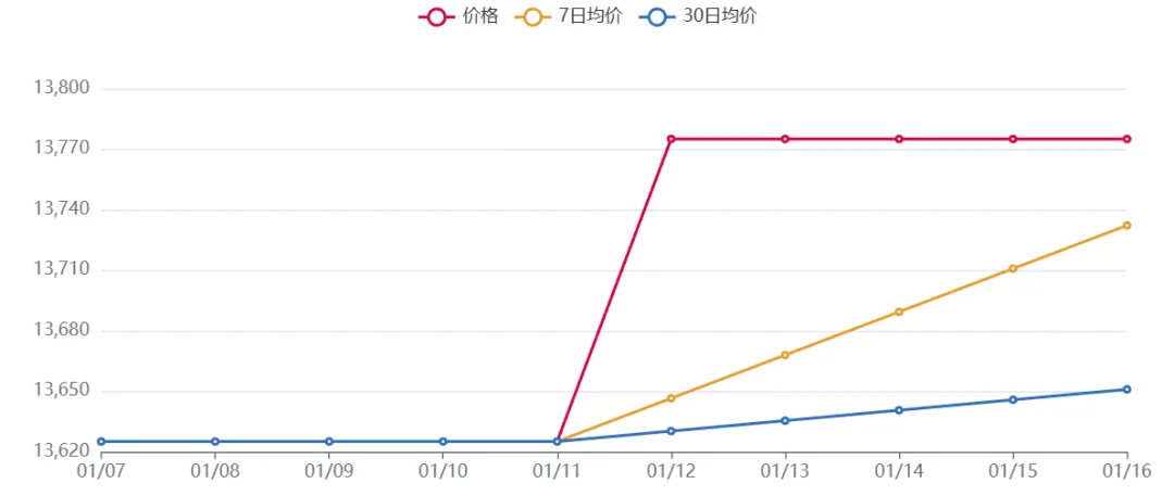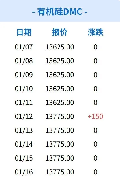 有机硅DMC近十日价格呈现上涨趋势,上涨日为1月12日。