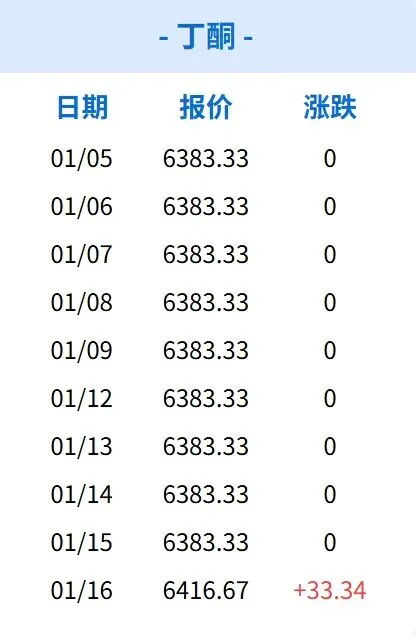 丁酮近十日价格呈现上涨趋势,上涨日为1月16日。