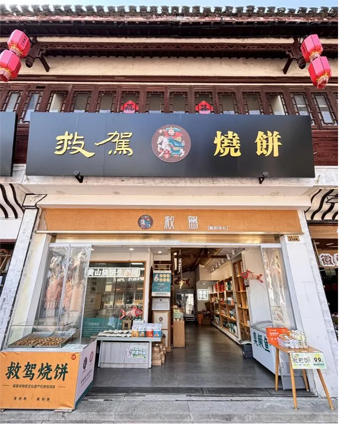 这里主营黄山徽救驾品牌烧饼与本土特产,将“诚信经营”揉进了面粉与馅料里。