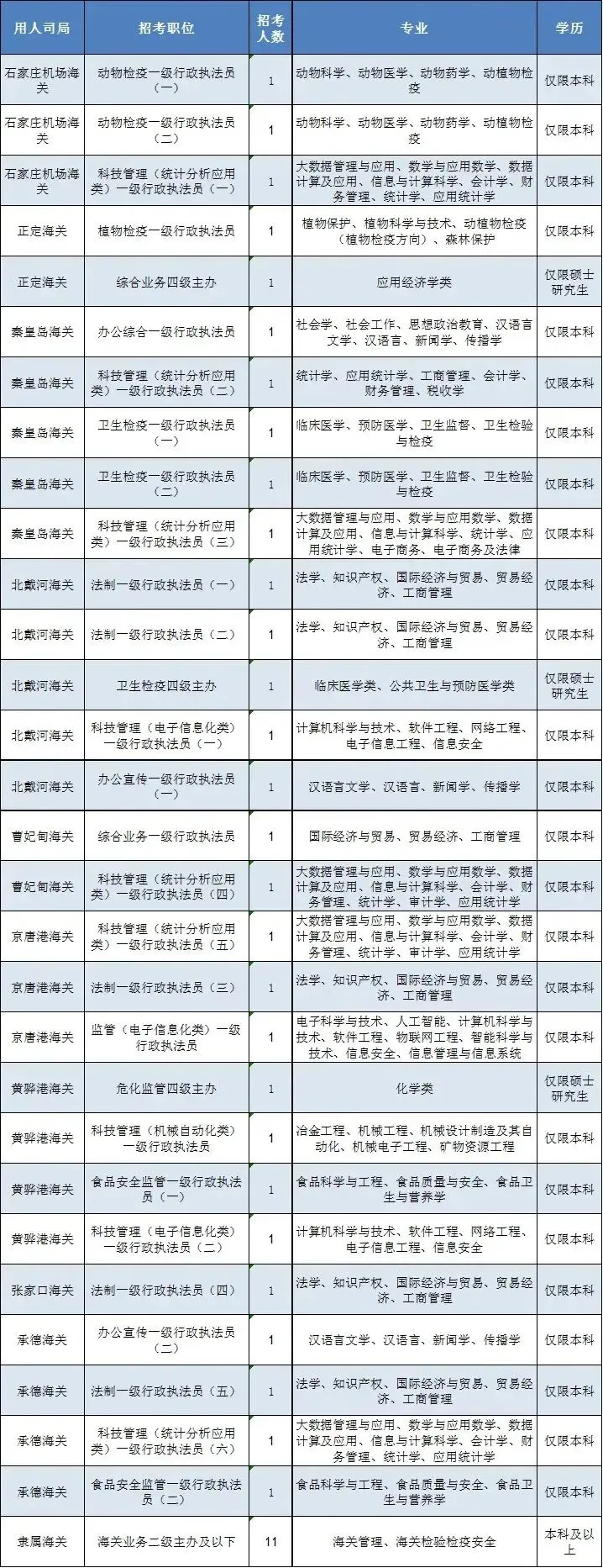 本次招聘的专业设置紧密贴合海关履职需求,覆盖本科、硕士研究生两个学历层次,专业门类多元且针对性强: