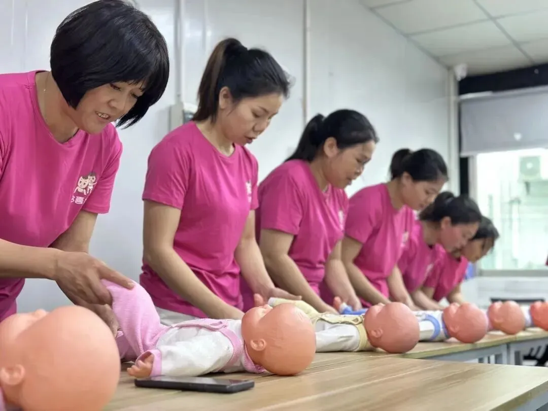 ▲月嫂正在学习婴儿异物卡喉处理方法