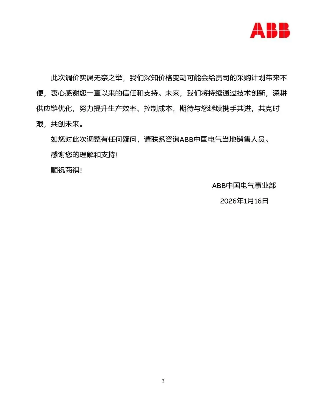 如您对此次调整有任何疑问,请联系咨询ABB中国电气当地销售人员。