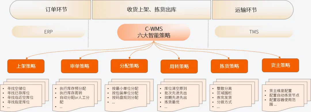 C-WMS解决方案致力于应对工业4.0环境下SKU增多、订单碎片化的行业挑战。通过多种智能策略,C-WMS可实现入库库位推荐、出库先进先出、批次出库、拣货路径优化等,旨在为企业仓储的降本增效提供坚实支撑。