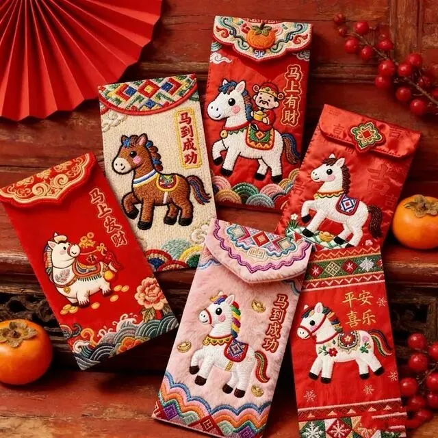 马年红包天花板5D仿刺绣红包30个,春节新年红包高档压岁钱红包。